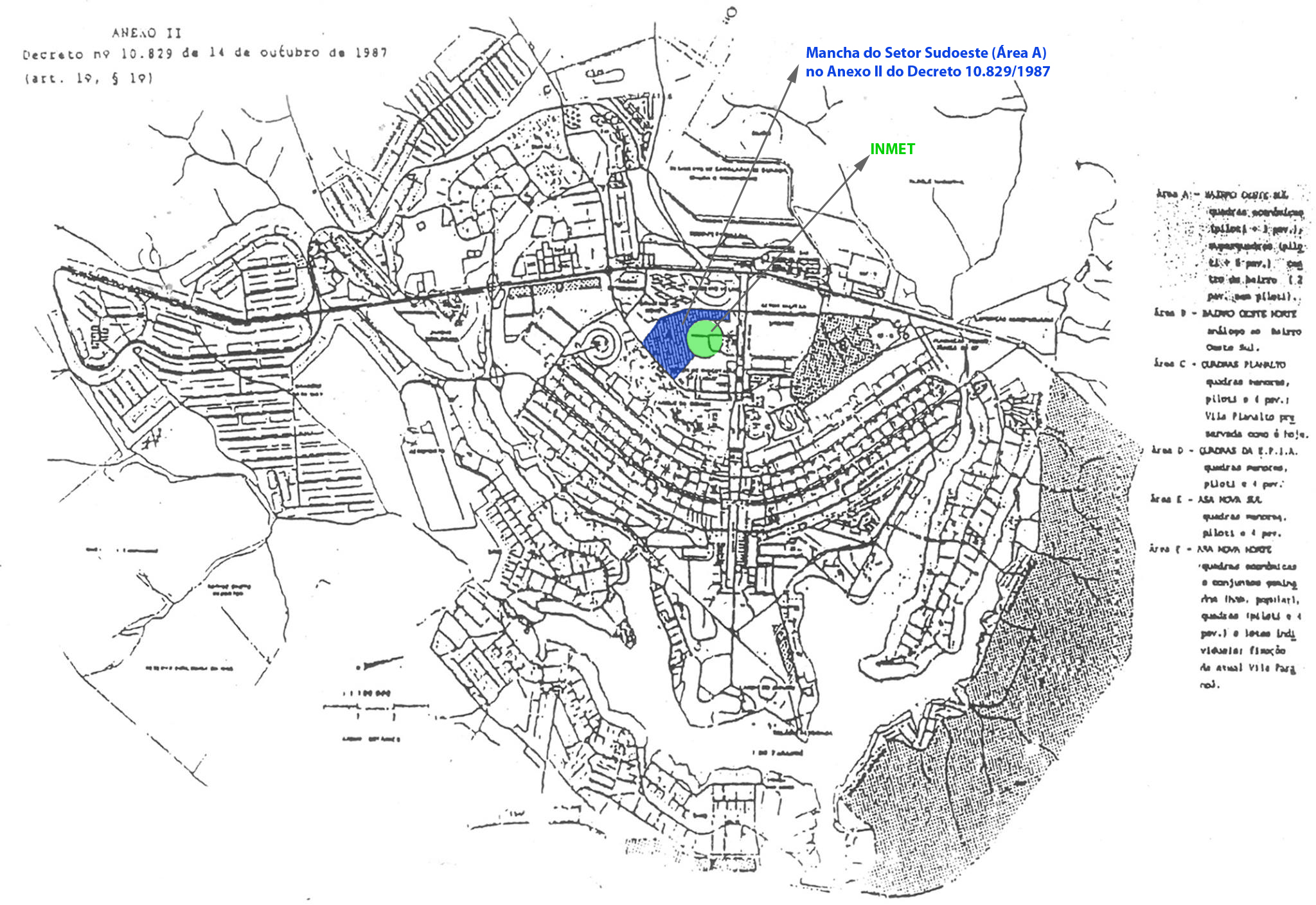 Anexo II do Decreto 10.829/1987 traz mapa que traduziu desenhos de Lucio Costa em formato de manchas. Nitidamente se verifica que a área da Marinha não foi prevista como parte do Setor Sudoeste, à época denominado “Área A”.